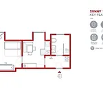تشتمل شقة Linz Sunny على منطقة لتناول الطعام والمطبخ المجهزة بالمكواة ولوح الكيّ ولوازم كيّ الملابس ومرافق ترفيهية مثل التلفزيون مع قنوات فضائية وتلفزيون بشاشة مسطحة مع قنوات فضائية. كما تمّ تجهيز مكان الإقامة بالصالون. يحتوي الحمام على المرحاض المنفصل وحوض الاستحمام والدوش، في حين يتمّ توفير مجفف الشعر والمناشف.